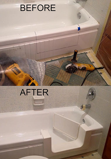 For safer entry into tub! Eliminates costly tear out. Installs on most existing tubs. One day installation.